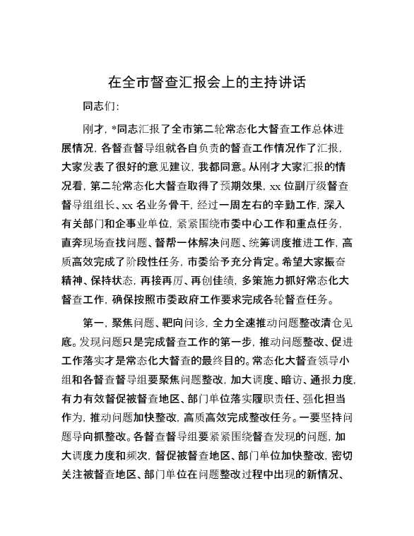 在全市督查汇报会上的主持讲话 2024-07-23 Word模板 128 购买前,请一定要先点击这里看看,欢迎持续关注,精彩模板每天推送 预览结束,本文件为word文档,一共5页,共2545字,请购买后,下载后查看 购买前,请一定要先点击这里看看,欢迎持续关注,精彩模板每天推送 资源下载下载价格29 RMBVIP免费升级VIP点击检测网盘有效后购买有任何充值和下载问题请加微信:xuexixuexi66 0 演讲发言