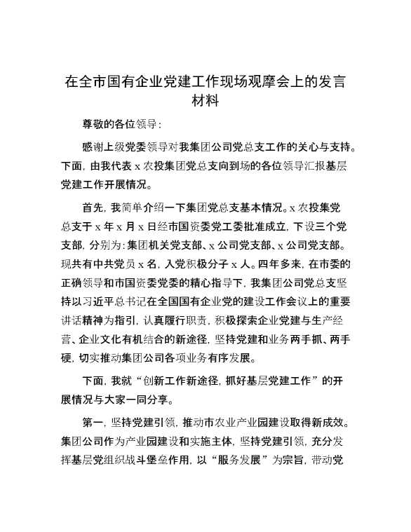 在全市国有企业党建工作现场观摩会上的发言材料 2024-07-23 Word模板 126 购买前,请一定要先点击这里看看,欢迎持续关注,精彩模板每天推送 预览结束,本文件为word文档,一共4页,共1633字,请购买后,下载后查看 购买前,请一定要先点击这里看看,欢迎持续关注,精彩模板每天推送 资源下载下载价格29 RMBVIP免费升级VIP点击检测网盘有效后购买有任何充值和下载问题请加微信:xuexixuexi66 0 演讲发言
