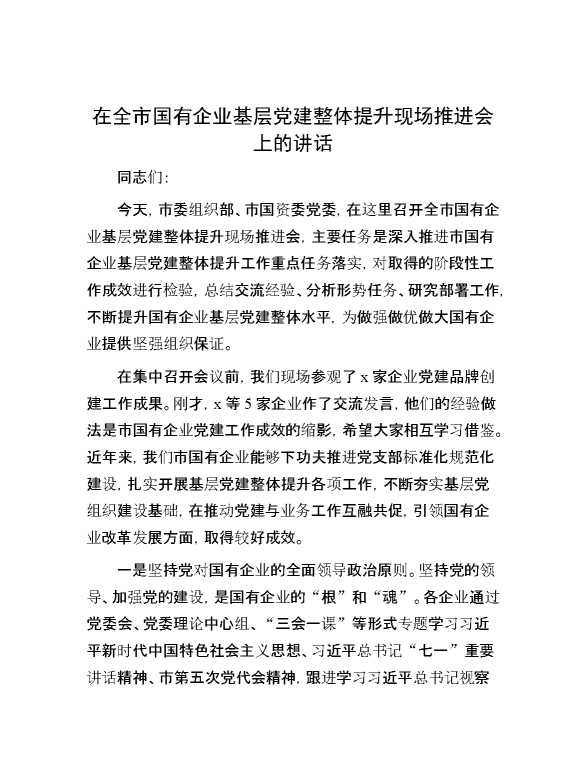 在全市国有企业基层党建整体提升现场推进会上的讲话 2024-07-23 Word模板 127 购买前,请一定要先点击这里看看,欢迎持续关注,精彩模板每天推送 预览结束,本文件为word文档,一共10页,共4690字,请购买后,下载后查看 购买前,请一定要先点击这里看看,欢迎持续关注,精彩模板每天推送 资源下载下载价格29 RMBVIP免费升级VIP点击检测网盘有效后购买有任何充值和下载问题请加微信:xuexixuexi66 0 演讲发言