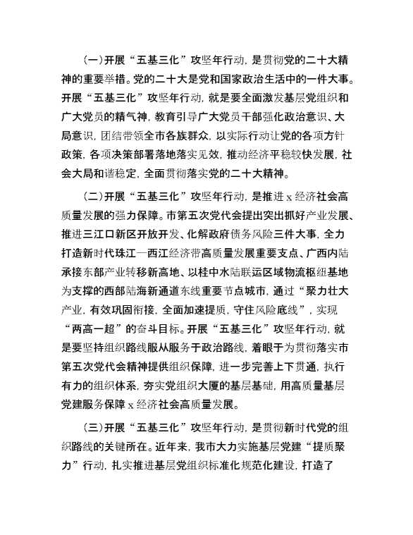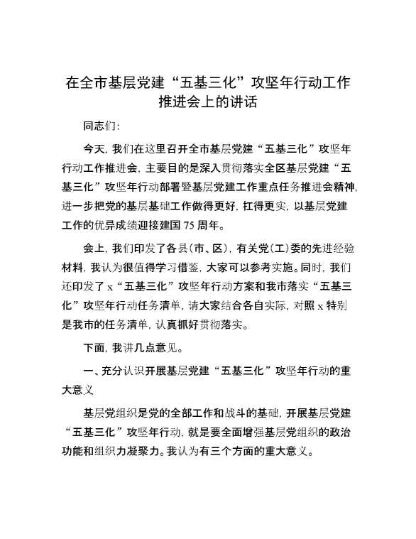 在全市基层党建“五基三化”攻坚年行动工作推进会上的讲话 2024-07-23 Word模板 125 购买前,请一定要先点击这里看看,欢迎持续关注,精彩模板每天推送 预览结束,本文件为word文档,一共17页,共8200字,请购买后,下载后查看 购买前,请一定要先点击这里看看,欢迎持续关注,精彩模板每天推送 资源下载下载价格29 RMBVIP免费升级VIP点击检测网盘有效后购买有任何充值和下载问题请加微信:xuexixuexi66 0 演讲发言