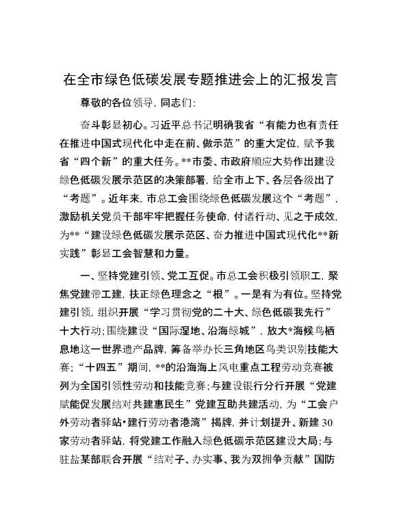 在全市绿色低碳发展专题推进会上的汇报发言 2024-07-23 Word模板 115 购买前,请一定要先点击这里看看,欢迎持续关注,精彩模板每天推送 预览结束,本文件为word文档,一共5页,共2396字,请购买后,下载后查看 购买前,请一定要先点击这里看看,欢迎持续关注,精彩模板每天推送 资源下载下载价格29 RMBVIP免费升级VIP点击检测网盘有效后购买有任何充值和下载问题请加微信:xuexixuexi66 0 演讲发言