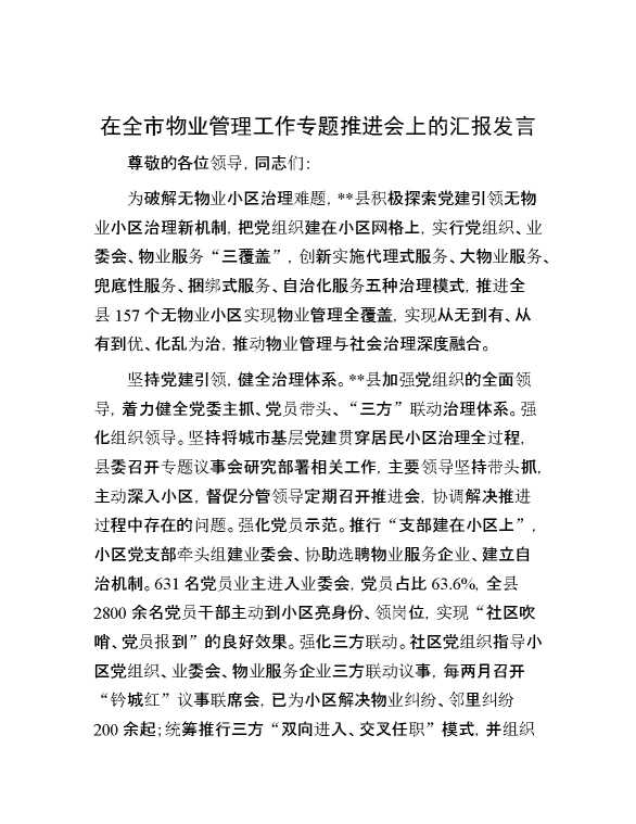 在全市物业管理工作专题推进会上的汇报发言 2024-07-23 Word模板 138 购买前,请一定要先点击这里看看,欢迎持续关注,精彩模板每天推送 预览结束,本文件为word文档,一共3页,共1367字,请购买后,下载后查看 购买前,请一定要先点击这里看看,欢迎持续关注,精彩模板每天推送 资源下载下载价格29 RMBVIP免费升级VIP点击检测网盘有效后购买有任何充值和下载问题请加微信:xuexixuexi66 0 演讲发言