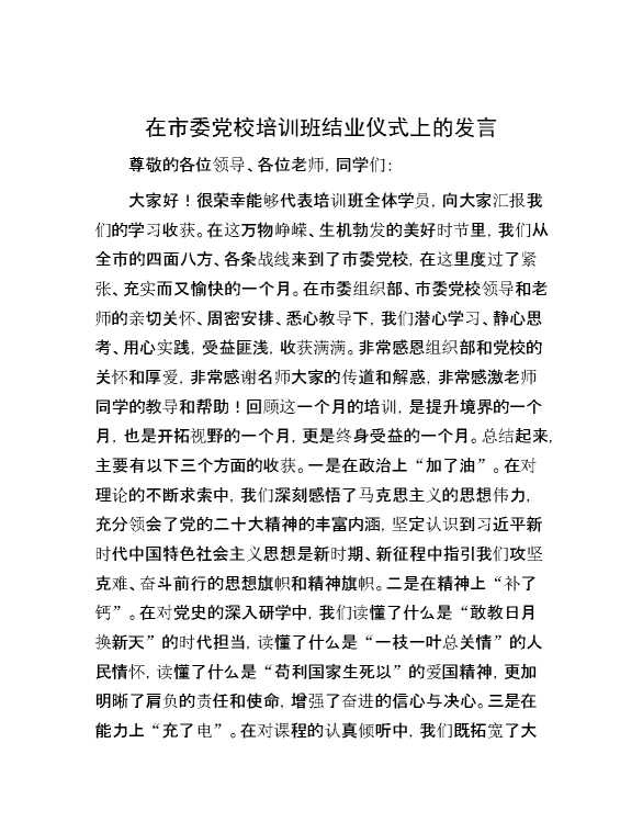 在市委党校培训班结业仪式上的发言 2024-07-23 Word模板 95 购买前,请一定要先点击这里看看,欢迎持续关注,精彩模板每天推送 预览结束,本文件为word文档,一共3页,共1359字,请购买后,下载后查看 购买前,请一定要先点击这里看看,欢迎持续关注,精彩模板每天推送 资源下载下载价格29 RMBVIP免费升级VIP点击检测网盘有效后购买有任何充值和下载问题请加微信:xuexixuexi66 0 演讲发言