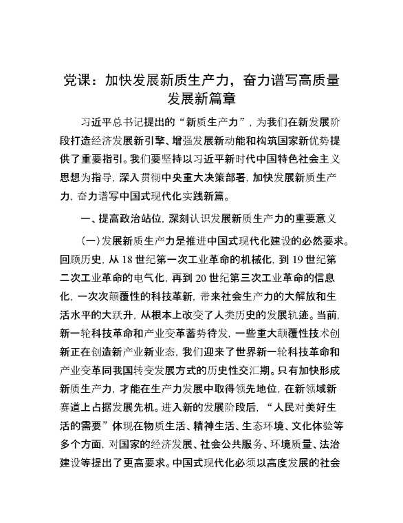 党课:加快发展新质生产力,奋力谱写高质量发展新篇章 2024-07-23 Word模板 135 购买前,请一定要先点击这里看看,欢迎持续关注,精彩模板每天推送 预览结束,本文件为word文档,一共9页,共4689字,请购买后,下载后查看 购买前,请一定要先点击这里看看,欢迎持续关注,精彩模板每天推送 资源下载下载价格29 RMBVIP免费升级VIP点击检测网盘有效后购买有任何充值和下载问题请加微信:xuexixuexi66 0 党课及生活会