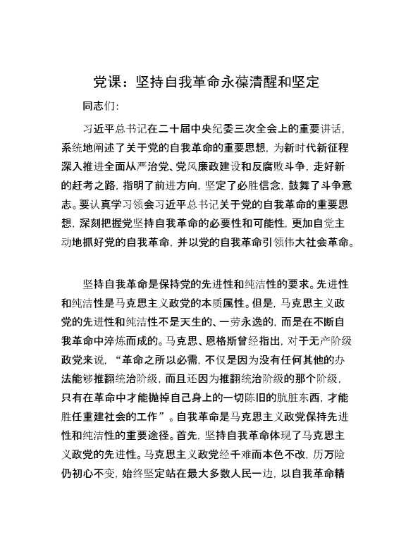 党课:坚持自我革命 永葆清醒和坚定 2024-07-23 Word模板 108 购买前,请一定要先点击这里看看,欢迎持续关注,精彩模板每天推送 预览结束,本文件为word文档,一共7页,共3305字,请购买后,下载后查看 购买前,请一定要先点击这里看看,欢迎持续关注,精彩模板每天推送 资源下载下载价格29 RMBVIP免费升级VIP点击检测网盘有效后购买有任何充值和下载问题请加微信:xuexixuexi66 0 党课及生活会