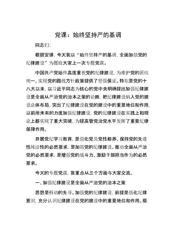 党课:始终坚持严的基调 2024-07-23 Word模板 110 购买前,请一定要先点击这里看看,欢迎持续关注,精彩模板每天推送 预览结束,本文件为word文档,一共9页,共4197字,请购买后,下载后查看 购买前,请一定要先点击这里看看,欢迎持续关注,精彩模板每天推送 资源下载下载价格29 RMBVIP免费升级VIP点击检测网盘有效后购买有任何充值和下载问题请加微信:xuexixuexi66 0 党课及生活会