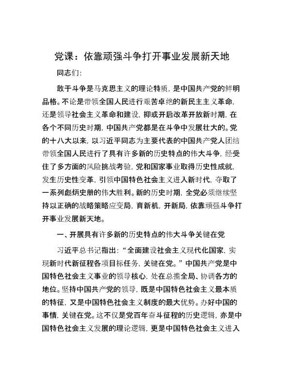 党课:依靠顽强斗争打开事业发展新天地 2024-07-23 Word模板 115 购买前,请一定要先点击这里看看,欢迎持续关注,精彩模板每天推送 预览结束,本文件为word文档,一共9页,共4407字,请购买后,下载后查看 购买前,请一定要先点击这里看看,欢迎持续关注,精彩模板每天推送 资源下载下载价格29 RMBVIP免费升级VIP点击检测网盘有效后购买有任何充值和下载问题请加微信:xuexixuexi66 0 党课及生活会