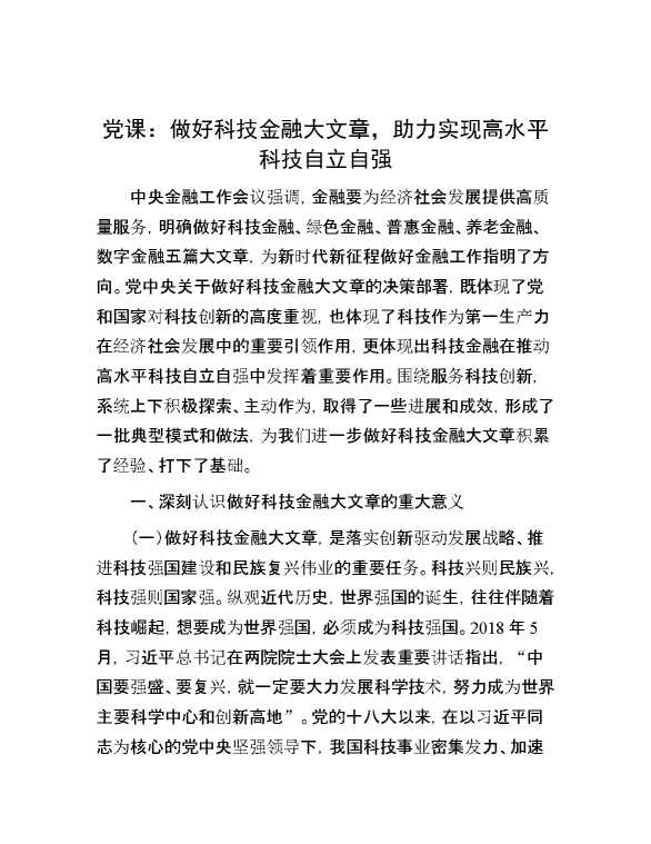 党课:做好科技金融大文章,助力实现高水平科技自立自强 2024-07-23 Word模板 109 购买前,请一定要先点击这里看看,欢迎持续关注,精彩模板每天推送 预览结束,本文件为word文档,一共8页,共3712字,请购买后,下载后查看 购买前,请一定要先点击这里看看,欢迎持续关注,精彩模板每天推送 资源下载下载价格29 RMBVIP免费升级VIP点击检测网盘有效后购买有任何充值和下载问题请加微信:xuexixuexi66 0 党课及生活会