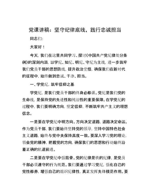 党课讲稿:坚守纪律底线,践行忠诚担当 2024-07-23 Word模板 108 购买前,请一定要先点击这里看看,欢迎持续关注,精彩模板每天推送 预览结束,本文件为word文档,一共4页,共1547字,请购买后,下载后查看 购买前,请一定要先点击这里看看,欢迎持续关注,精彩模板每天推送 资源下载下载价格29 RMBVIP免费升级VIP点击检测网盘有效后购买有任何充值和下载问题请加微信:xuexixuexi66 0 党课及生活会