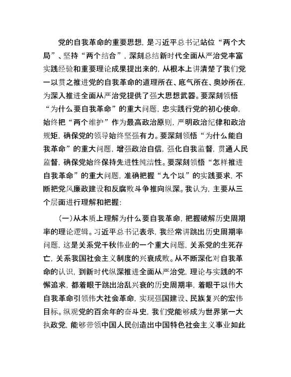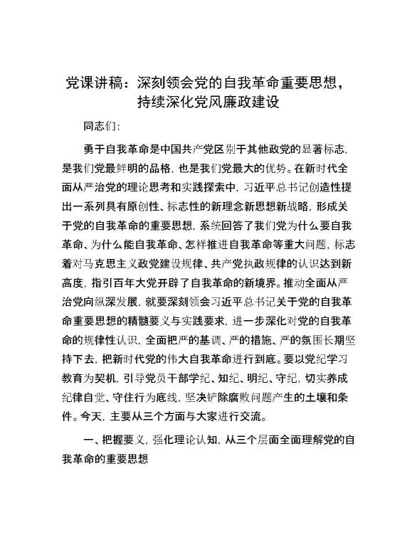 党课讲稿:深刻领会党的自我革命重要思想,持续深化党风廉政建设 2024-07-23 Word模板 113 购买前,请一定要先点击这里看看,欢迎持续关注,精彩模板每天推送 预览结束,本文件为word文档,一共13页,共6242字,请购买后,下载后查看 购买前,请一定要先点击这里看看,欢迎持续关注,精彩模板每天推送 资源下载下载价格29 RMBVIP免费升级VIP点击检测网盘有效后购买有任何充值和下载问题请加微信:xuexixuexi66 0 党课及生活会