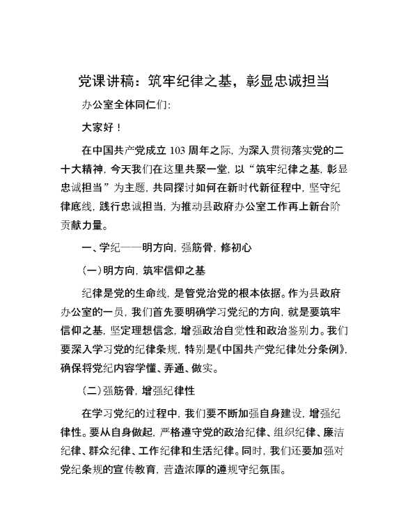党课讲稿:筑牢纪律之基,彰显忠诚担当 2024-07-23 Word模板 112 购买前,请一定要先点击这里看看,欢迎持续关注,精彩模板每天推送 预览结束,本文件为word文档,一共4页,共1424字,请购买后,下载后查看 购买前,请一定要先点击这里看看,欢迎持续关注,精彩模板每天推送 资源下载下载价格29 RMBVIP免费升级VIP点击检测网盘有效后购买有任何充值和下载问题请加微信:xuexixuexi66 0 党课及生活会