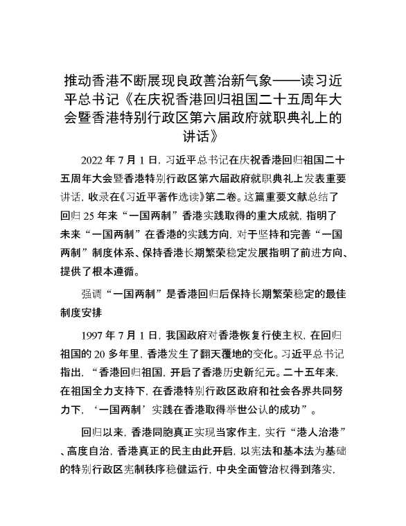 推动香港不断展现良政善治新气象——读习近平总书记《在庆祝香港回归祖国二十五周年大会暨香港特别行政区第六届政府就职典礼上的讲话》 2024-08-15 Word模板 81 购买前,请一定要先点击这里看看,欢迎持续关注,精彩模板每天推送 预览结束,本文件为word文档,一共5页,共2269字,请购买后,下载后查看 购买前,请一定要先点击这里看看,欢迎持续关注,精彩模板每天推送 资源下载下载价格59 RMBVIP免费升级VIP立即购买有任何充值和下载问题请加微信:xuexixuexi66 0 演讲发言