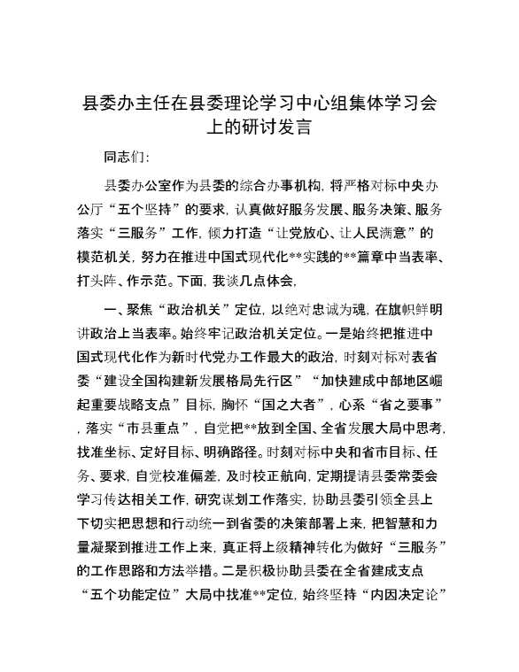 县委办主任在县委理论学习中心组集体学习会上的研讨发言 2024-08-15 Word模板 84 购买前,请一定要先点击这里看看,欢迎持续关注,精彩模板每天推送 预览结束,本文件为word文档,一共4页,共1980字,请购买后,下载后查看 购买前,请一定要先点击这里看看,欢迎持续关注,精彩模板每天推送 资源下载下载价格59 RMBVIP免费升级VIP点击检测网盘有效后购买有任何充值和下载问题请加微信:xuexixuexi66 0 演讲发言