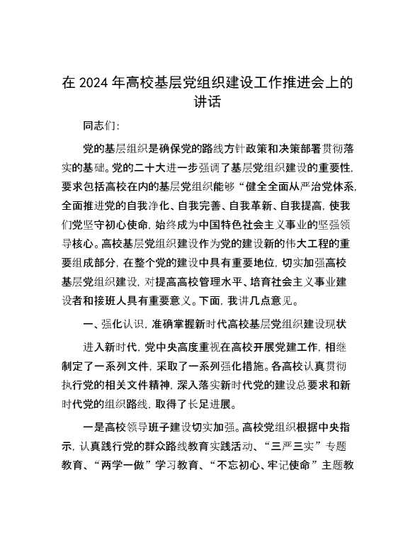 在2024年高校基层党组织建设工作推进会上的讲话 2024-08-15 Word模板 88 购买前,请一定要先点击这里看看,欢迎持续关注,精彩模板每天推送 预览结束,本文件为word文档,一共8页,共3800字,请购买后,下载后查看 购买前,请一定要先点击这里看看,欢迎持续关注,精彩模板每天推送 资源下载下载价格59 RMBVIP免费升级VIP点击检测网盘有效后购买有任何充值和下载问题请加微信:xuexixuexi66 0 演讲发言