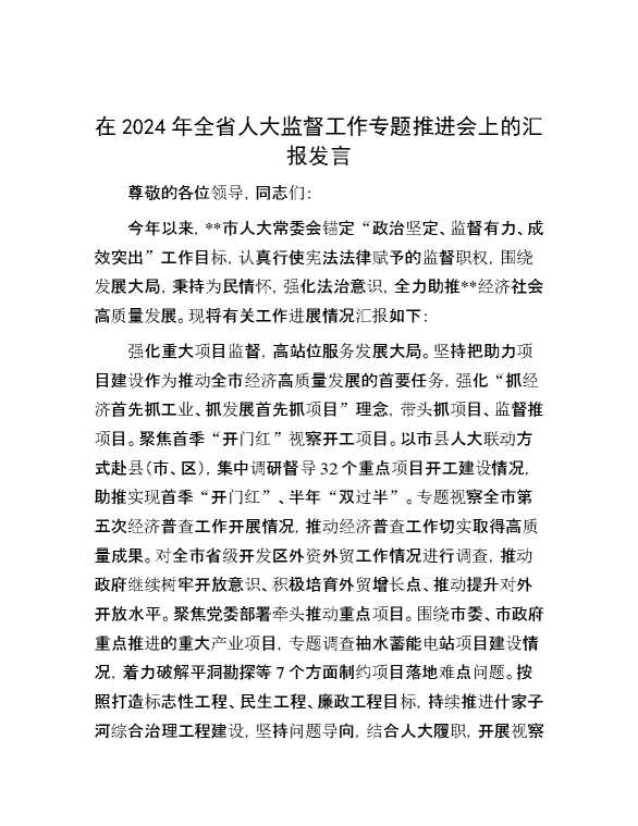 在2024年全省人大监督工作专题推进会上的汇报发言 2024-08-15 Word模板 79 购买前,请一定要先点击这里看看,欢迎持续关注,精彩模板每天推送 预览结束,本文件为word文档,一共5页,共2402字,请购买后,下载后查看 购买前,请一定要先点击这里看看,欢迎持续关注,精彩模板每天推送 资源下载下载价格59 RMBVIP免费升级VIP点击检测网盘有效后购买有任何充值和下载问题请加微信:xuexixuexi66 0 演讲发言