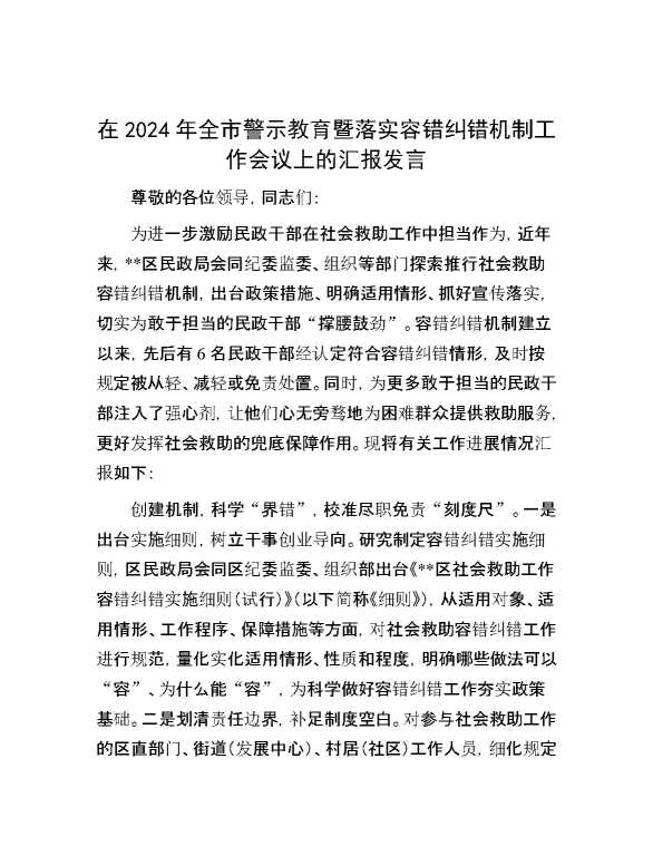 在2024年全市警示教育暨落实容错纠错机制工作会议上的汇报发言 2024-08-15 Word模板 85 购买前,请一定要先点击这里看看,欢迎持续关注,精彩模板每天推送 预览结束,本文件为word文档,一共4页,共1655字,请购买后,下载后查看 购买前,请一定要先点击这里看看,欢迎持续关注,精彩模板每天推送 资源下载下载价格59 RMBVIP免费升级VIP点击检测网盘有效后购买有任何充值和下载问题请加微信:xuexixuexi66 0 演讲发言