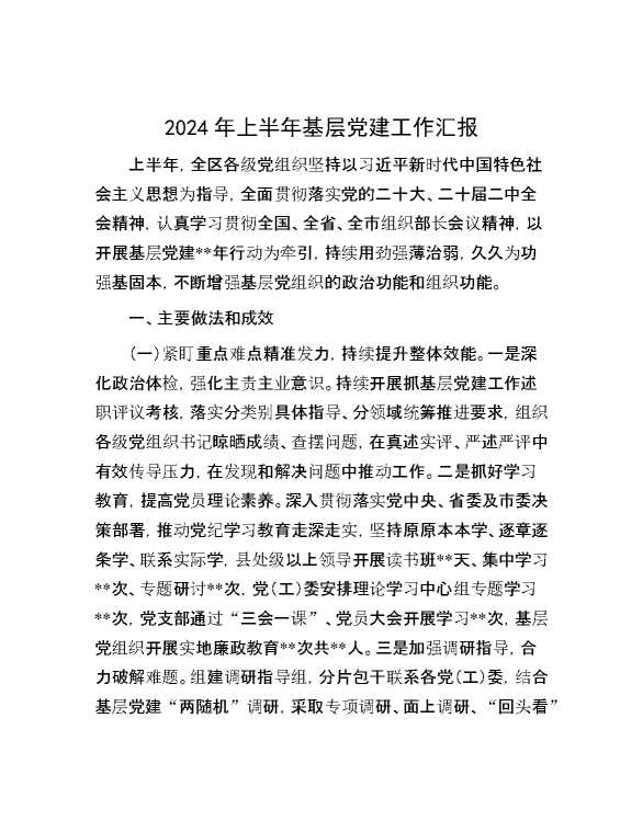 2024年上半年基层党建工作汇报 2024-08-16 Word模板 112 购买前,请一定要先点击这里看看,欢迎持续关注,精彩模板每天推送 预览结束,本文件为word文档,一共4页,共1784字,请购买后,下载后查看 购买前,请一定要先点击这里看看,欢迎持续关注,精彩模板每天推送 资源下载下载价格59 RMBVIP免费升级VIP点击检测网盘有效后购买有任何充值和下载问题请加微信:xuexixuexi66 0 总结汇报