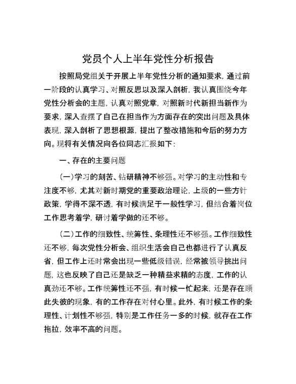 党员个人上半年党性分析报告 2024-08-16 Word模板 110 购买前,请一定要先点击这里看看,欢迎持续关注,精彩模板每天推送 预览结束,本文件为word文档,一共4页,共1880字,请购买后,下载后查看 购买前,请一定要先点击这里看看,欢迎持续关注,精彩模板每天推送 资源下载下载价格59 RMBVIP免费升级VIP点击检测网盘有效后购买有任何充值和下载问题请加微信:xuexixuexi66 0 总结汇报