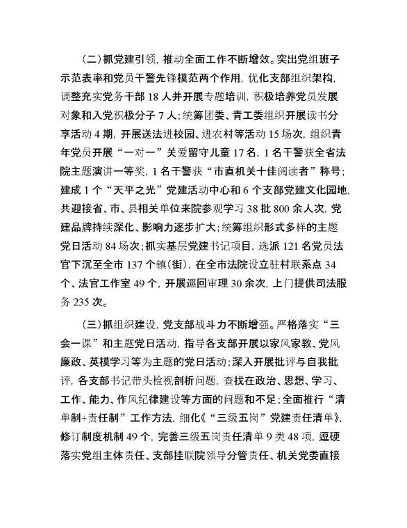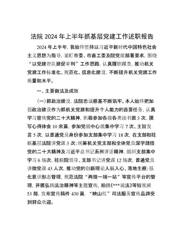 法院2024年上半年抓基层党建工作述职报告 2024-08-16 Word模板 134 购买前,请一定要先点击这里看看,欢迎持续关注,精彩模板每天推送 预览结束,本文件为word文档,一共5页,共2078字,请购买后,下载后查看 购买前,请一定要先点击这里看看,欢迎持续关注,精彩模板每天推送 资源下载下载价格59 RMBVIP免费升级VIP点击检测网盘有效后购买有任何充值和下载问题请加微信:xuexixuexi66 0 总结汇报