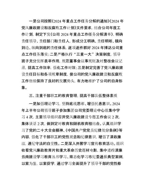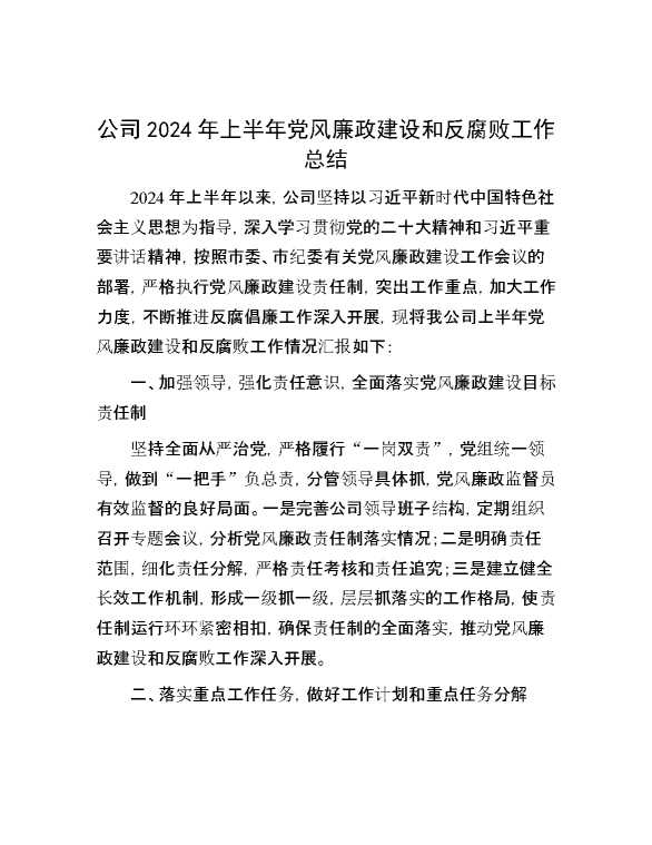 公司2024年上半年党风廉政建设和反腐败工作总结 2024-08-16 Word模板 111 购买前,请一定要先点击这里看看,欢迎持续关注,精彩模板每天推送 预览结束,本文件为word文档,一共4页,共1566字,请购买后,下载后查看 购买前,请一定要先点击这里看看,欢迎持续关注,精彩模板每天推送 资源下载下载价格59 RMBVIP免费升级VIP点击检测网盘有效后购买有任何充值和下载问题请加微信:xuexixuexi66 0 总结汇报