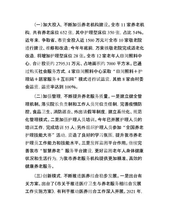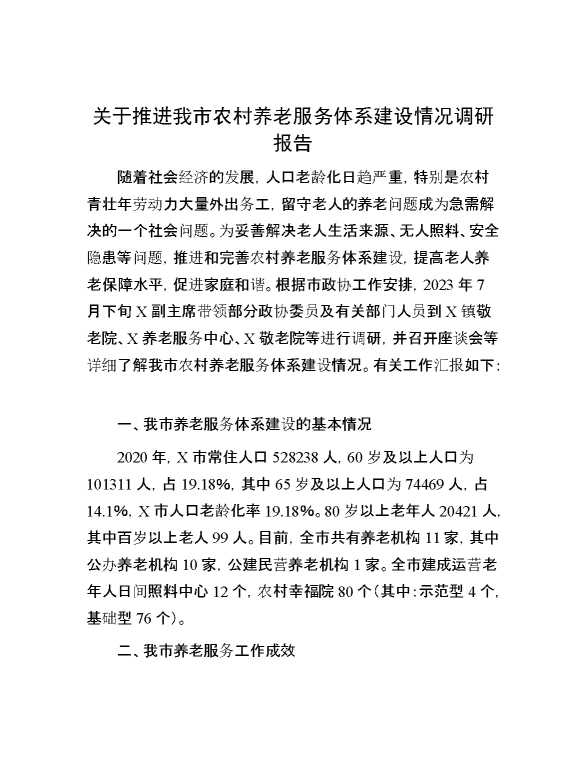 关于推进我市农村养老服务体系建设情况调研报告 2024-08-16 Word模板 104 购买前,请一定要先点击这里看看,欢迎持续关注,精彩模板每天推送 预览结束,本文件为word文档,一共4页,共1935字,请购买后,下载后查看 购买前,请一定要先点击这里看看,欢迎持续关注,精彩模板每天推送 资源下载下载价格59 RMBVIP免费升级VIP点击检测网盘有效后购买有任何充值和下载问题请加微信:xuexixuexi66 0 总结汇报