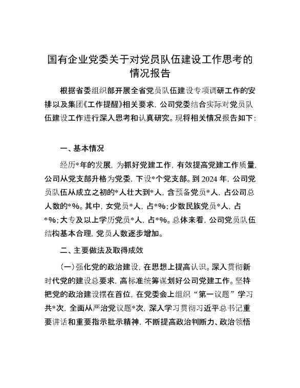 国有企业党委关于对党员队伍建设工作思考的情况报告 2024-08-16 Word模板 110 购买前,请一定要先点击这里看看,欢迎持续关注,精彩模板每天推送 预览结束,本文件为word文档,一共5页,共1806字,请购买后,下载后查看 购买前,请一定要先点击这里看看,欢迎持续关注,精彩模板每天推送 资源下载下载价格59 RMBVIP免费升级VIP点击检测网盘有效后购买有任何充值和下载问题请加微信:xuexixuexi66 0 总结汇报
