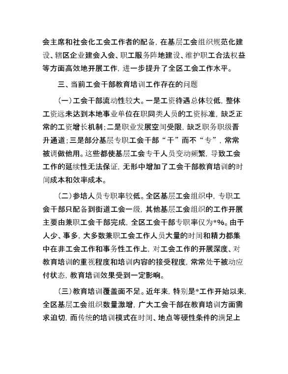 基层工会干部教育培训调研报告 2024-08-16 Word模板 117 购买前,请一定要先点击这里看看,欢迎持续关注,精彩模板每天推送 预览结束,本文件为word文档,一共6页,共2624字,请购买后,下载后查看 购买前,请一定要先点击这里看看,欢迎持续关注,精彩模板每天推送 资源下载下载价格59 RMBVIP免费升级VIP点击检测网盘有效后购买有任何充值和下载问题请加微信:xuexixuexi66 0 总结汇报