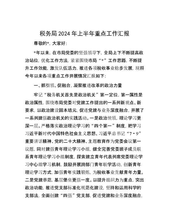 税务局2024年上半年重点工作汇报 2024-08-16 Word模板 111 购买前,请一定要先点击这里看看,欢迎持续关注,精彩模板每天推送 预览结束,本文件为word文档,一共7页,共3233字,请购买后,下载后查看 购买前,请一定要先点击这里看看,欢迎持续关注,精彩模板每天推送 资源下载下载价格59 RMBVIP免费升级VIP点击检测网盘有效后购买有任何充值和下载问题请加微信:xuexixuexi66 0 总结汇报