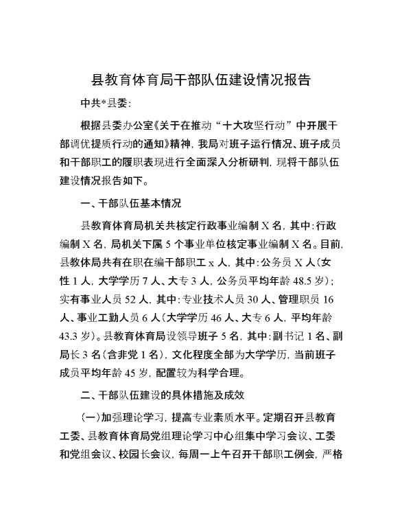 县教育体育局干部队伍建设情况报告 2024-08-16 Word模板 99 购买前,请一定要先点击这里看看,欢迎持续关注,精彩模板每天推送 预览结束,本文件为word文档,一共5页,共2273字,请购买后,下载后查看 购买前,请一定要先点击这里看看,欢迎持续关注,精彩模板每天推送 资源下载下载价格59 RMBVIP免费升级VIP点击检测网盘有效后购买有任何充值和下载问题请加微信:xuexixuexi66 0 总结汇报