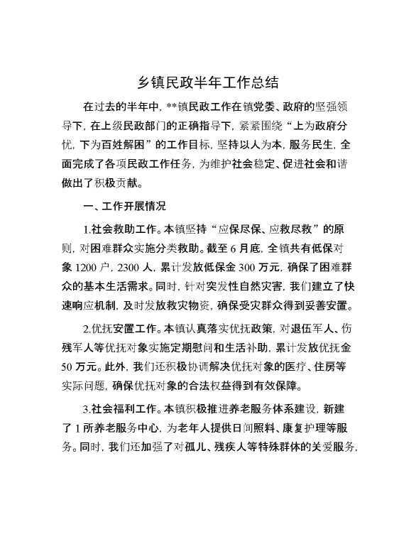 乡镇民政半年工作总结 2024-08-16 Word模板 113 购买前,请一定要先点击这里看看,欢迎持续关注,精彩模板每天推送 预览结束,本文件为word文档,一共3页,共1131字,请购买后,下载后查看 购买前,请一定要先点击这里看看,欢迎持续关注,精彩模板每天推送 资源下载下载价格59 RMBVIP免费升级VIP点击检测网盘有效后购买有任何充值和下载问题请加微信:xuexixuexi66 0 总结汇报