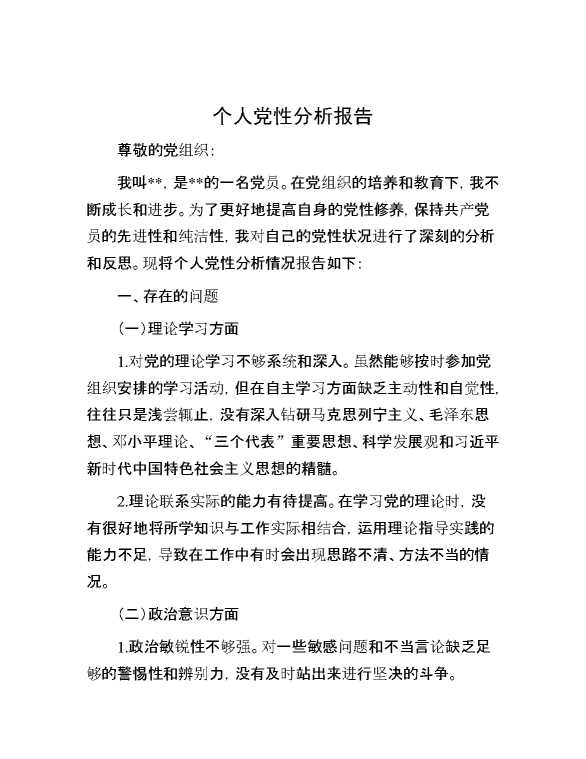 个人党性分析报告 2024-08-19 Word模板 90 购买前,请一定要先点击这里看看,欢迎持续关注,精彩模板每天推送 预览结束,本文件为word文档,一共6页,共1888字,请购买后,下载后查看 购买前,请一定要先点击这里看看,欢迎持续关注,精彩模板每天推送 资源下载下载价格59 RMBVIP免费升级VIP点击检测网盘有效后购买有任何充值和下载问题请加微信:xuexixuexi66 0 总结汇报