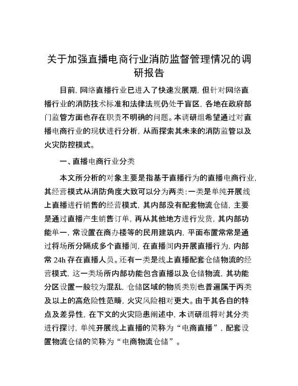 关于加强直播电商行业消防监督管理情况的调研报告 2024-08-19 Word模板 108 购买前,请一定要先点击这里看看,欢迎持续关注,精彩模板每天推送 预览结束,本文件为word文档,一共9页,共4284字,请购买后,下载后查看 购买前,请一定要先点击这里看看,欢迎持续关注,精彩模板每天推送 资源下载下载价格59 RMBVIP免费升级VIP点击检测网盘有效后购买有任何充值和下载问题请加微信:xuexixuexi66 0 总结汇报