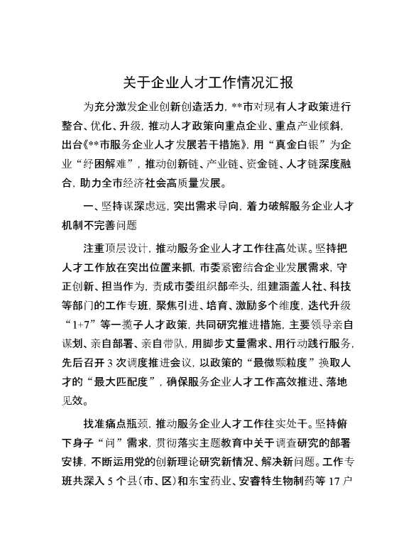 关于企业人才工作情况汇报 2024-08-19 Word模板 110 购买前,请一定要先点击这里看看,欢迎持续关注,精彩模板每天推送 预览结束,本文件为word文档,一共5页,共2018字,请购买后,下载后查看 购买前,请一定要先点击这里看看,欢迎持续关注,精彩模板每天推送 资源下载下载价格59 RMBVIP免费升级VIP点击检测网盘有效后购买有任何充值和下载问题请加微信:xuexixuexi66 0 总结汇报