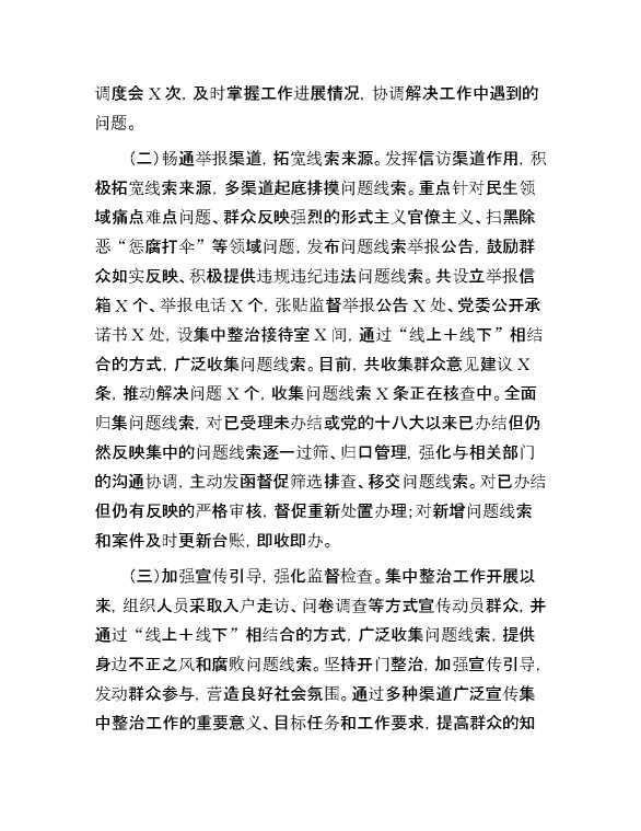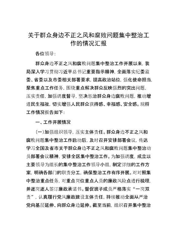关于群众身边不正之风和腐败问题集中整治工作的情况汇报 2024-08-19 Word模板 100 购买前,请一定要先点击这里看看,欢迎持续关注,精彩模板每天推送 预览结束,本文件为word文档,一共7页,共3275字,请购买后,下载后查看 购买前,请一定要先点击这里看看,欢迎持续关注,精彩模板每天推送 资源下载下载价格59 RMBVIP免费升级VIP点击检测网盘有效后购买有任何充值和下载问题请加微信:xuexixuexi66 0 总结汇报