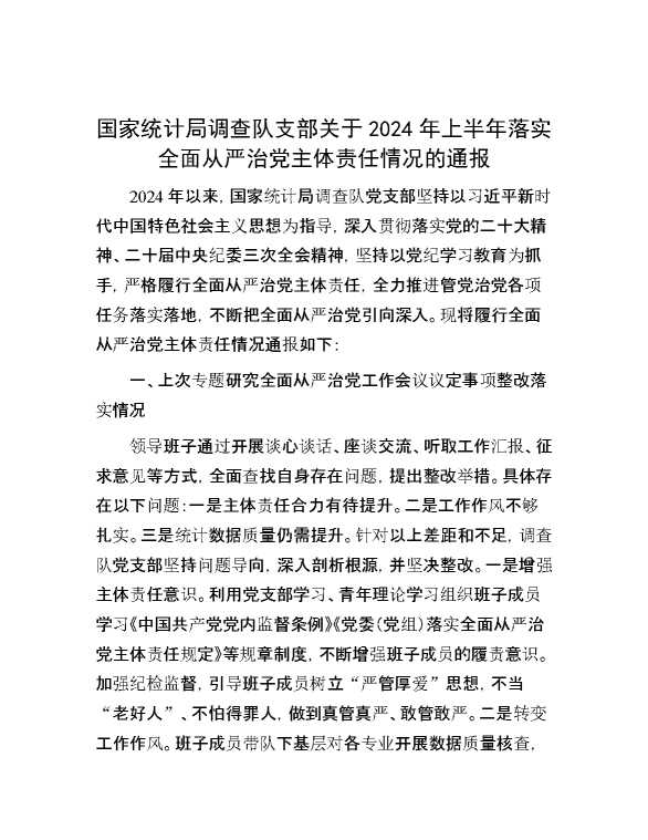 国家统计局调查队支部关于2024年上半年落实全面从严治党主体责任情况的通报 2024-08-19 Word模板 174 购买前,请一定要先点击这里看看,欢迎持续关注,精彩模板每天推送 预览结束,本文件为word文档,一共6页,共2853字,请购买后,下载后查看 购买前,请一定要先点击这里看看,欢迎持续关注,精彩模板每天推送 资源下载下载价格59 RMBVIP免费升级VIP点击检测网盘有效后购买有任何充值和下载问题请加微信:xuexixuexi66 0 总结汇报