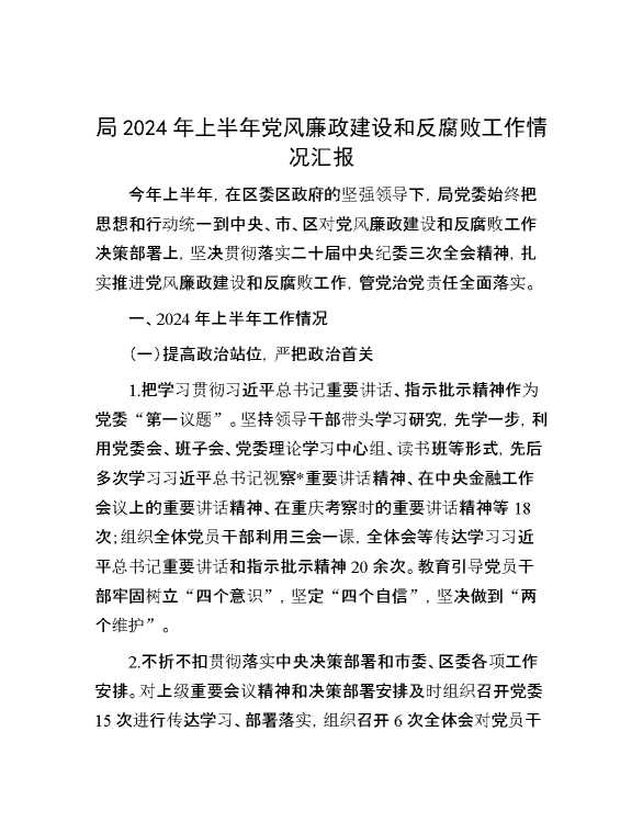 局2024年上半年党风廉政建设和反腐败工作情况汇报 2024-08-19 Word模板 146 购买前,请一定要先点击这里看看,欢迎持续关注,精彩模板每天推送 预览结束,本文件为word文档,一共7页,共3301字,请购买后,下载后查看 购买前,请一定要先点击这里看看,欢迎持续关注,精彩模板每天推送 资源下载下载价格59 RMBVIP免费升级VIP点击检测网盘有效后购买有任何充值和下载问题请加微信:xuexixuexi66 0 总结汇报