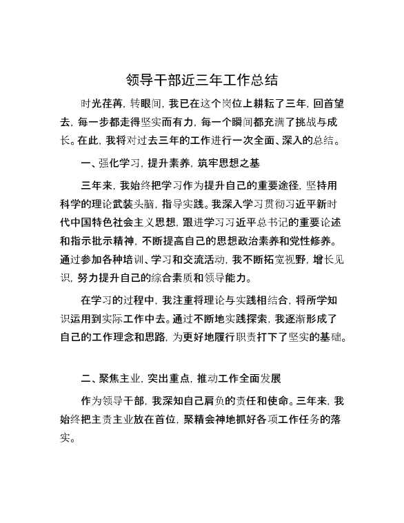 领导干部近三年工作总结 2024-08-19 Word模板 111 购买前,请一定要先点击这里看看,欢迎持续关注,精彩模板每天推送 预览结束,本文件为word文档,一共3页,共1164字,请购买后,下载后查看 购买前,请一定要先点击这里看看,欢迎持续关注,精彩模板每天推送 资源下载下载价格59 RMBVIP免费升级VIP点击检测网盘有效后购买有任何充值和下载问题请加微信:xuexixuexi66 0 总结汇报
