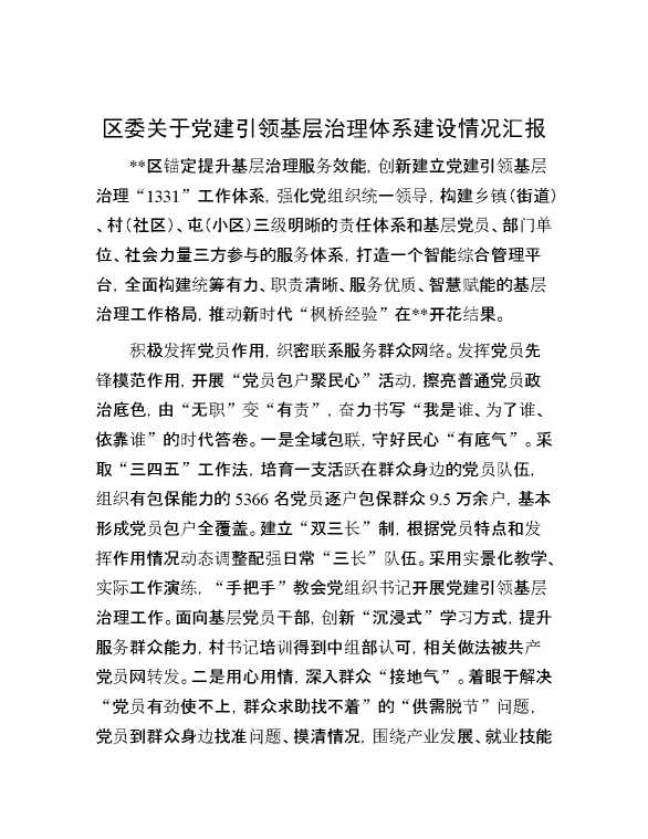 区委关于党建引领基层治理体系建设情况汇报 2024-08-19 Word模板 122 购买前,请一定要先点击这里看看,欢迎持续关注,精彩模板每天推送 预览结束,本文件为word文档,一共4页,共2084字,请购买后,下载后查看 购买前,请一定要先点击这里看看,欢迎持续关注,精彩模板每天推送 资源下载下载价格59 RMBVIP免费升级VIP点击检测网盘有效后购买有任何充值和下载问题请加微信:xuexixuexi66 0 总结汇报