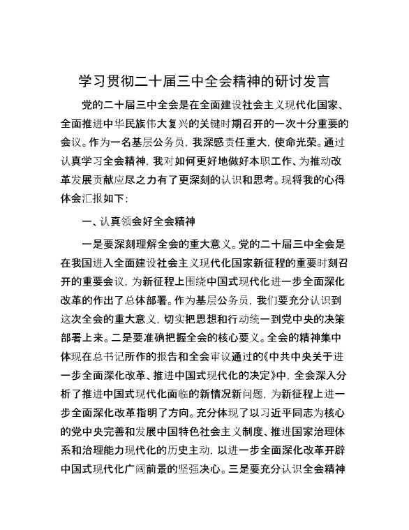 学习贯彻二十届三中全会精神的研讨发言 2024-08-22 Word模板 102 购买前,请一定要先点击这里看看,欢迎持续关注,精彩模板每天推送 预览结束,本文件为word文档,一共3页,共1437字,请购买后,下载后查看 购买前,请一定要先点击这里看看,欢迎持续关注,精彩模板每天推送 资源下载下载价格59 RMBVIP免费升级VIP点击检测网盘有效后购买有任何充值和下载问题请加微信:xuexixuexi66 0 演讲发言