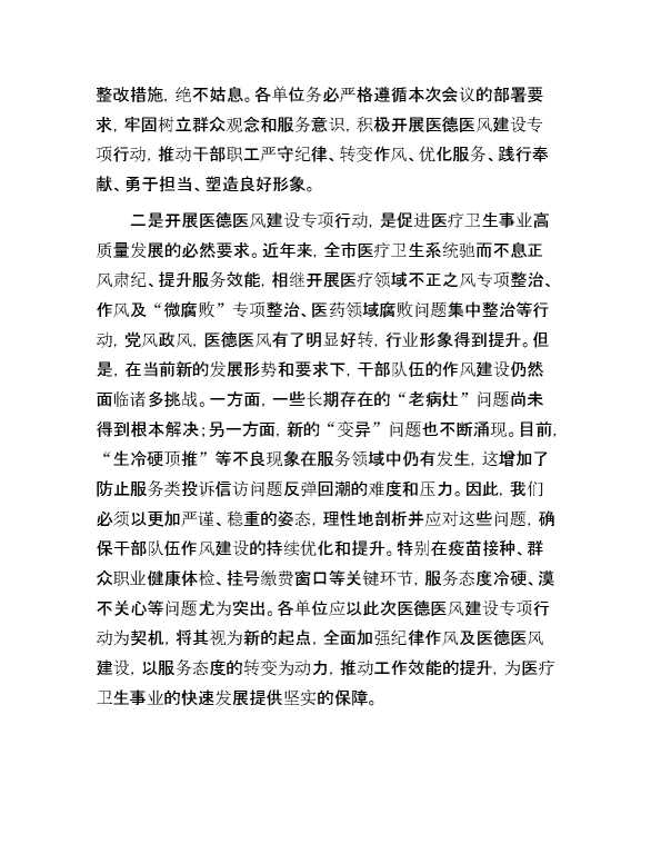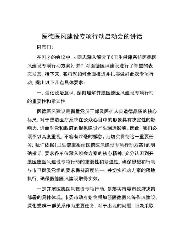 医德医风建设专项行动启动会的讲话 2024-08-22 Word模板 103 购买前,请一定要先点击这里看看,欢迎持续关注,精彩模板每天推送 预览结束,本文件为word文档,一共5页,共2415字,请购买后,下载后查看 购买前,请一定要先点击这里看看,欢迎持续关注,精彩模板每天推送 资源下载下载价格59 RMBVIP免费升级VIP点击检测网盘有效后购买有任何充值和下载问题请加微信:xuexixuexi66 0 演讲发言