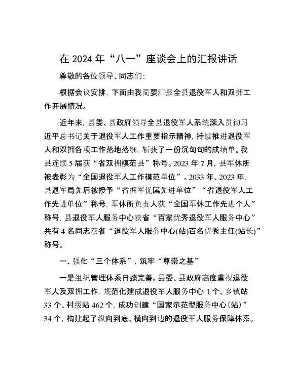 在2024年“八一”座谈会上的汇报讲话 2024-08-22 Word模板 98 购买前,请一定要先点击这里看看,欢迎持续关注,精彩模板每天推送 预览结束,本文件为word文档,一共5页,共1967字,请购买后,下载后查看 购买前,请一定要先点击这里看看,欢迎持续关注,精彩模板每天推送 资源下载下载价格59 RMBVIP免费升级VIP点击检测网盘有效后购买有任何充值和下载问题请加微信:xuexixuexi66 0 演讲发言