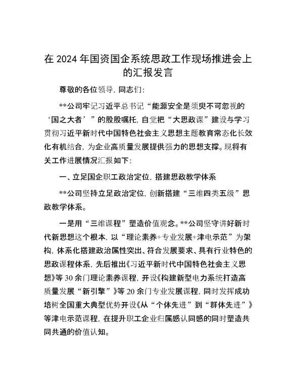 在2024年国资国企系统思政工作现场推进会上的汇报发言 2024-08-22 Word模板 100 购买前,请一定要先点击这里看看,欢迎持续关注,精彩模板每天推送 预览结束,本文件为word文档,一共5页,共1862字,请购买后,下载后查看 购买前,请一定要先点击这里看看,欢迎持续关注,精彩模板每天推送 资源下载下载价格59 RMBVIP免费升级VIP点击检测网盘有效后购买有任何充值和下载问题请加微信:xuexixuexi66 0 演讲发言