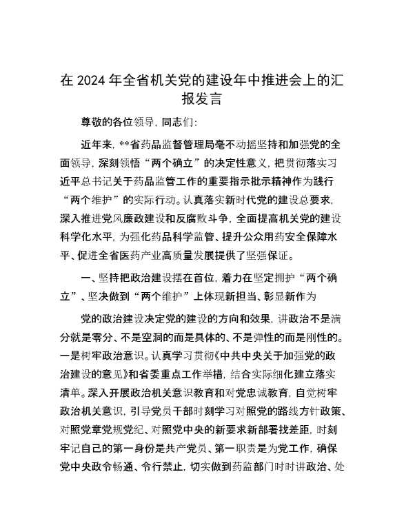 在2024年全省机关党的建设年中推进会上的汇报发言 2024-08-22 Word模板 99 购买前,请一定要先点击这里看看,欢迎持续关注,精彩模板每天推送 预览结束,本文件为word文档,一共9页,共4631字,请购买后,下载后查看 购买前,请一定要先点击这里看看,欢迎持续关注,精彩模板每天推送 资源下载下载价格59 RMBVIP免费升级VIP点击检测网盘有效后购买有任何充值和下载问题请加微信:xuexixuexi66 0 演讲发言