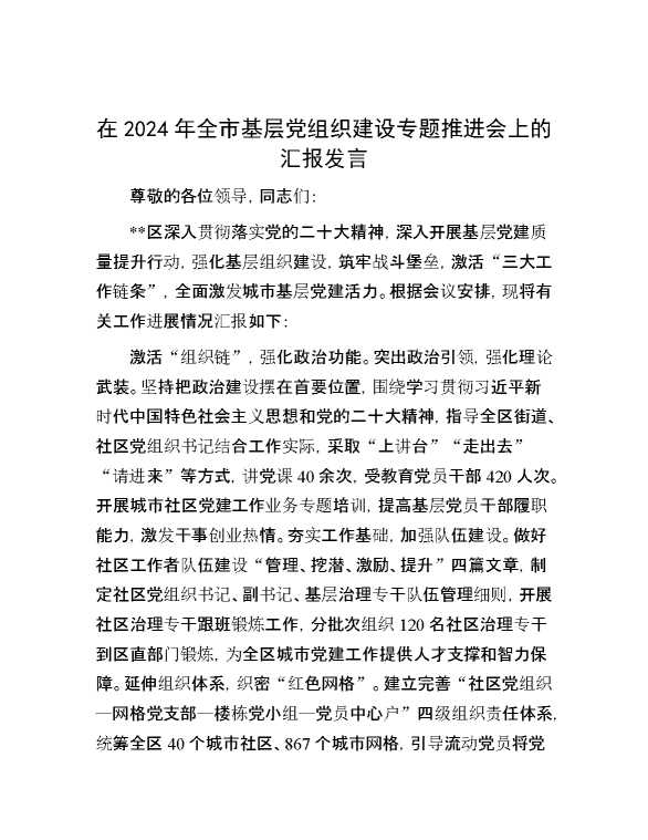 在2024年全市基层党组织建设专题推进会上的汇报发言 2024-08-22 Word模板 105 购买前,请一定要先点击这里看看,欢迎持续关注,精彩模板每天推送 预览结束,本文件为word文档,一共3页,共1227字,请购买后,下载后查看 购买前,请一定要先点击这里看看,欢迎持续关注,精彩模板每天推送 资源下载下载价格59 RMBVIP免费升级VIP点击检测网盘有效后购买有任何充值和下载问题请加微信:xuexixuexi66 0 演讲发言