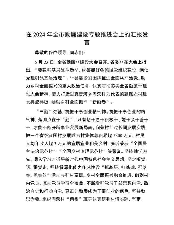 在2024年全市勤廉建设专题推进会上的汇报发言 2024-08-22 Word模板 105 购买前,请一定要先点击这里看看,欢迎持续关注,精彩模板每天推送 预览结束,本文件为word文档,一共5页,共2004字,请购买后,下载后查看 购买前,请一定要先点击这里看看,欢迎持续关注,精彩模板每天推送 资源下载下载价格59 RMBVIP免费升级VIP点击检测网盘有效后购买有任何充值和下载问题请加微信:xuexixuexi66 0 演讲发言