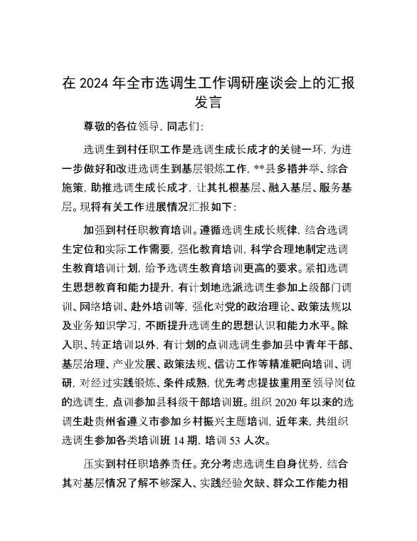 在2024年全市选调生工作调研座谈会上的汇报发言 2024-08-22 Word模板 103 购买前,请一定要先点击这里看看,欢迎持续关注,精彩模板每天推送 预览结束,本文件为word文档,一共3页,共1322字,请购买后,下载后查看 购买前,请一定要先点击这里看看,欢迎持续关注,精彩模板每天推送 资源下载下载价格59 RMBVIP免费升级VIP点击检测网盘有效后购买有任何充值和下载问题请加微信:xuexixuexi66 0 演讲发言