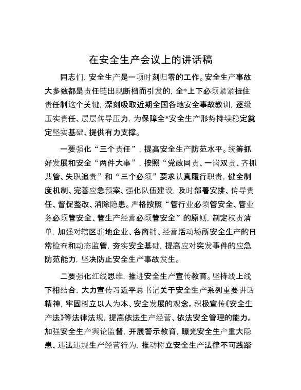 在安全生产会议上的讲话稿 2024-08-22 Word模板 105 购买前,请一定要先点击这里看看,欢迎持续关注,精彩模板每天推送 预览结束,本文件为word文档,一共3页,共1169字,请购买后,下载后查看 购买前,请一定要先点击这里看看,欢迎持续关注,精彩模板每天推送 资源下载下载价格59 RMBVIP免费升级VIP点击检测网盘有效后购买有任何充值和下载问题请加微信:xuexixuexi66 0 演讲发言