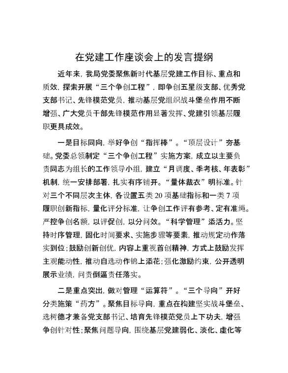 在党建工作座谈会上的发言提纲 2024-08-22 Word模板 100 购买前,请一定要先点击这里看看,欢迎持续关注,精彩模板每天推送 预览结束,本文件为word文档,一共3页,共1038字,请购买后,下载后查看 购买前,请一定要先点击这里看看,欢迎持续关注,精彩模板每天推送 资源下载下载价格59 RMBVIP免费升级VIP点击检测网盘有效后购买有任何充值和下载问题请加微信:xuexixuexi66 0 演讲发言