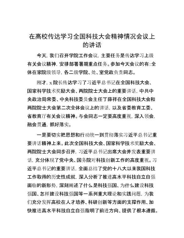 在高校传达学习全国科技大会精神情况会议上的讲话 2024-08-22 Word模板 105 购买前,请一定要先点击这里看看,欢迎持续关注,精彩模板每天推送 预览结束,本文件为word文档,一共5页,共2187字,请购买后,下载后查看 购买前,请一定要先点击这里看看,欢迎持续关注,精彩模板每天推送 资源下载下载价格59 RMBVIP免费升级VIP点击检测网盘有效后购买有任何充值和下载问题请加微信:xuexixuexi66 0 演讲发言