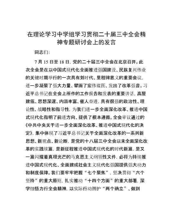 在理论学习中学组学习贯彻二十届三中全会精神专题研讨会上的发言 2024-08-22 Word模板 106 购买前,请一定要先点击这里看看,欢迎持续关注,精彩模板每天推送 预览结束,本文件为word文档,一共4页,共1559字,请购买后,下载后查看 购买前,请一定要先点击这里看看,欢迎持续关注,精彩模板每天推送 资源下载下载价格59 RMBVIP免费升级VIP点击检测网盘有效后购买有任何充值和下载问题请加微信:xuexixuexi66 0 演讲发言